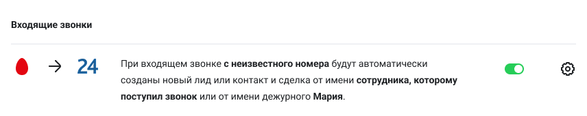 Чтобы при исходящих также создавались сущности, включите их создание в разделе «Исходящие звонки».