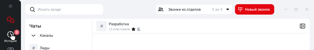 На иконке истории в боковом меню отображается общее число пропущенных звонков, как личных, так и по вашему отделу.