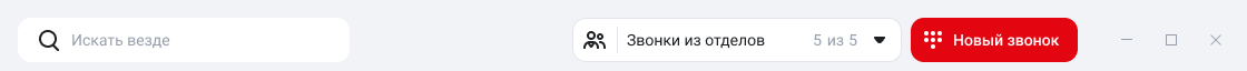 - в верхнем меню — найти нужный контакт или канал, управлять приемом звонков из отделов, в которых вы состоите, а также звонить через панель набора номера.