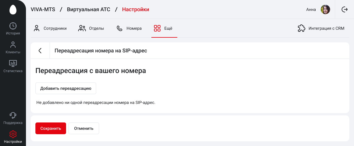 1. В разделе «Еще» перейдите в «Переадресация номера на SIP-адрес» и в разделе нажмите «Добавить переадресацию».