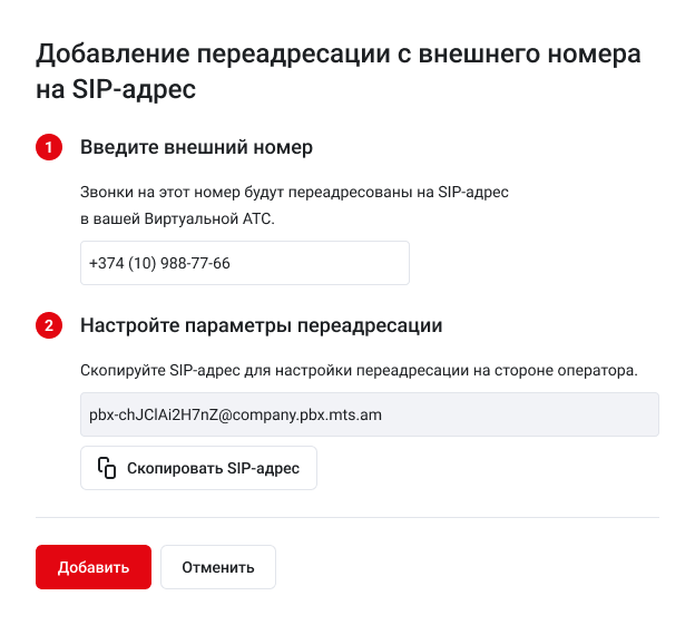 Функция предоставляется без дополнительной платы. Вы можете подключить до 30 внешних номеров. Для расширения лимита обратитесь в поддержку.